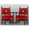Coppia di poltrone in noce intagliato foderate in velluto rosso con stemma sec.XVII