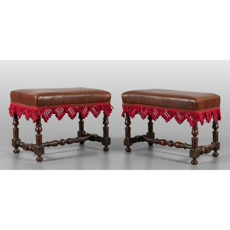 Coppia di sgabelli a rocchetto in noce inizi sec.XVIII