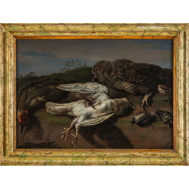 Scuola francese sec.XVIII 'Natura morta con cacciagione' olio