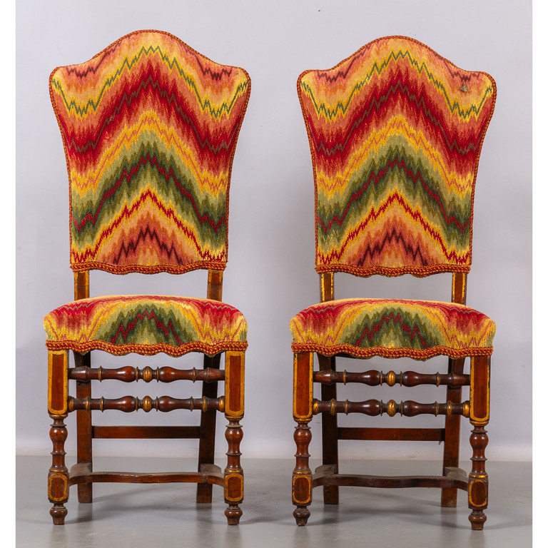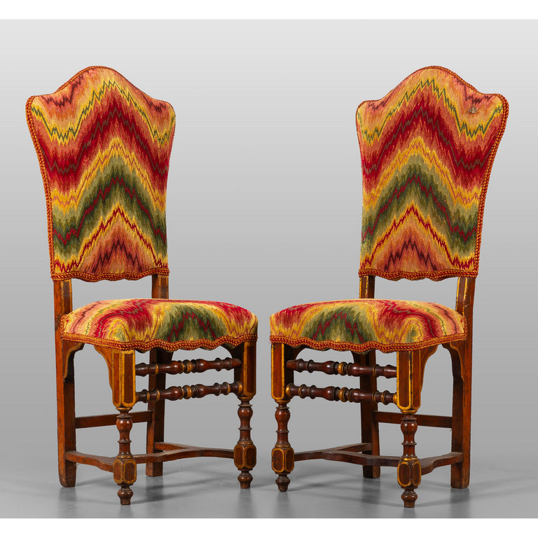 Coppia di sedie Luigi XIV in noce con profili dorati Lombardia inizi sec.XVIII