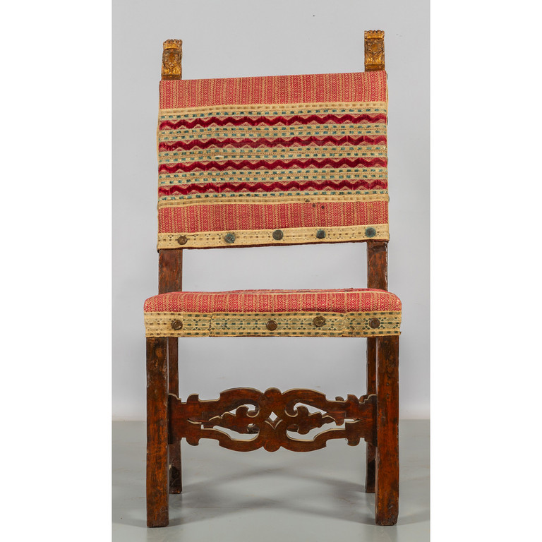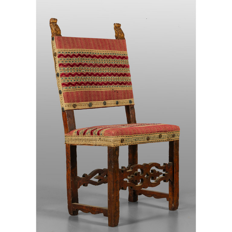 Sedia in noce intagliato terminali con stemma in legno intagliato e dorato sec.XVIII