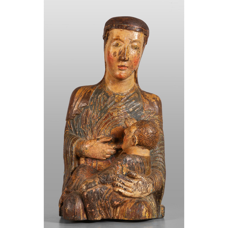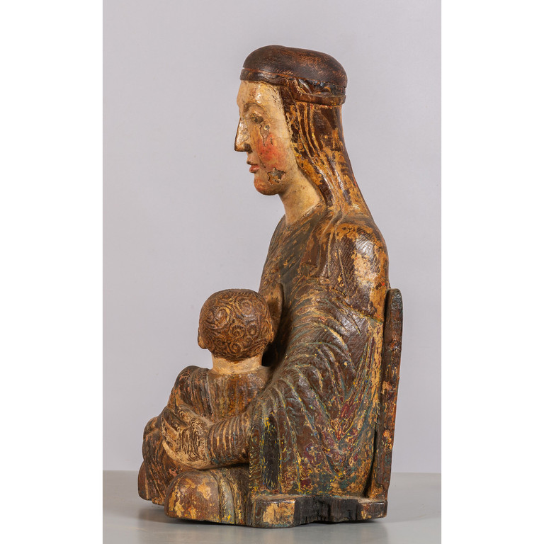 Madonna con Bambino scultura in legno intagliato e policromato Piemonte sec.XIV