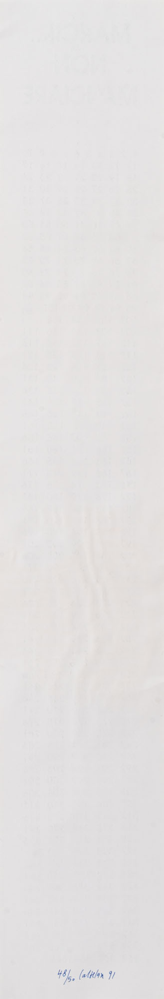 MAURIZIO CATTELAN(1960)Marcire non marciare1991Stampa litografica su carta, es. 48/50 su una tiratura di 50 esemplari80 x 12 cmFirma, data e numerazione al retroPROVENIENZA:Galleria Neon, BolognaCollezione privata, MilanoBIBLIOGRAFIA:Cfr. V. Peruzzi, MAURIZIO CATTELAN grafiche e multipli - graphics and multiples, 2012, pag. 55 (ill.)