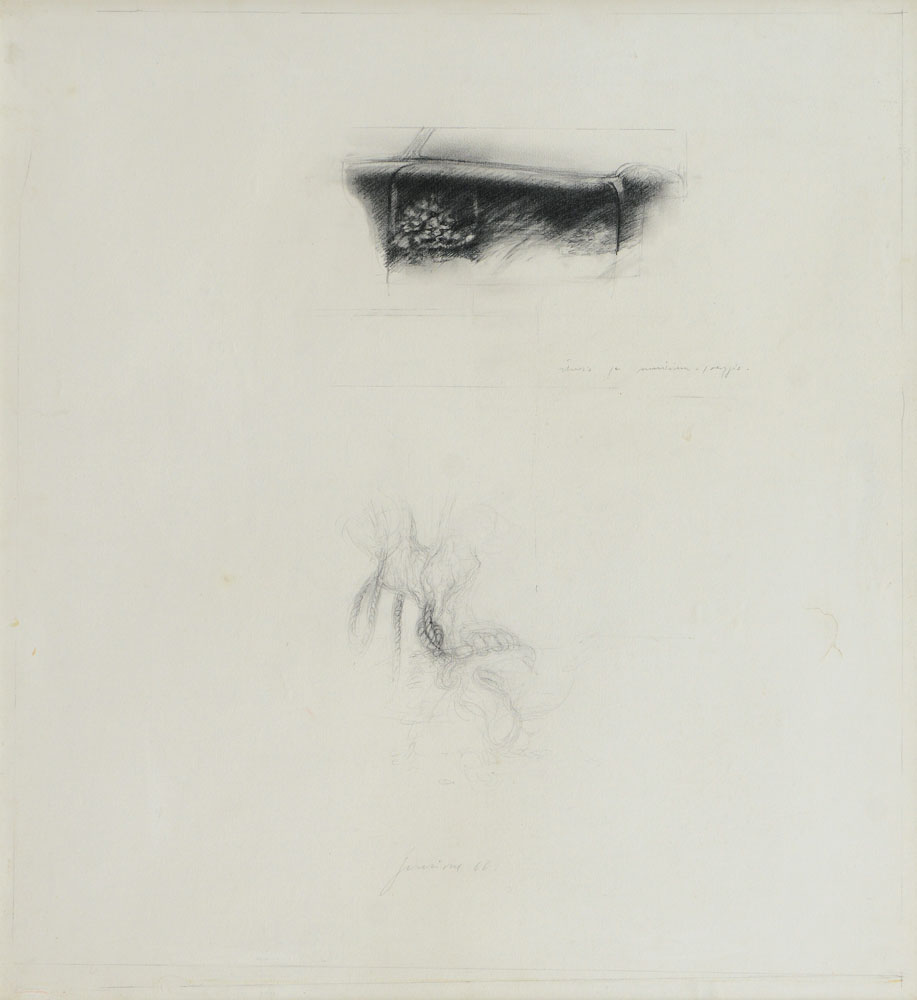 matita su carta intelata cm. 61x56, firma e anno in basso al centro, titolo sulla destra, timbro della Galleria d'Arte L'Acquario (Giulianova-TE) al retro, certificato di provenienza della Galleria Allegrini Arte Contemporanea (BS) allegato.