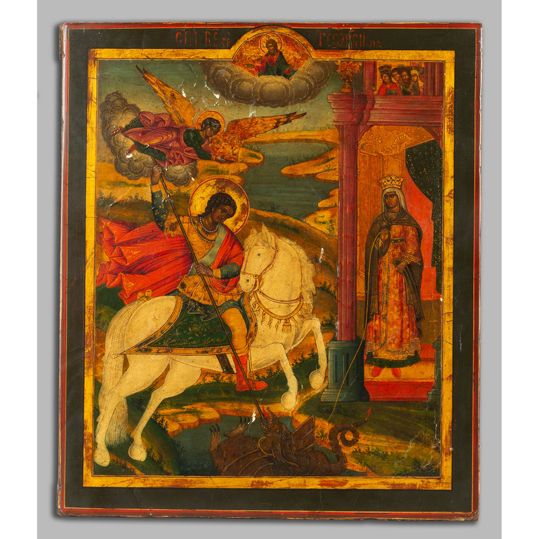 Precedente Lotto 0942 Successivo Aste Boetto - Via Mura dello Zerbino 10R, 16122 Genova ASTA DI ANTIQUARIATO Asta di Antiquariato giovedì 7 marzo 2024 ore 10:30 (UTC +01:00) DIPINTO 'San Giorgio che uccide il drago' icona sec.XVIIIcm. 37x45