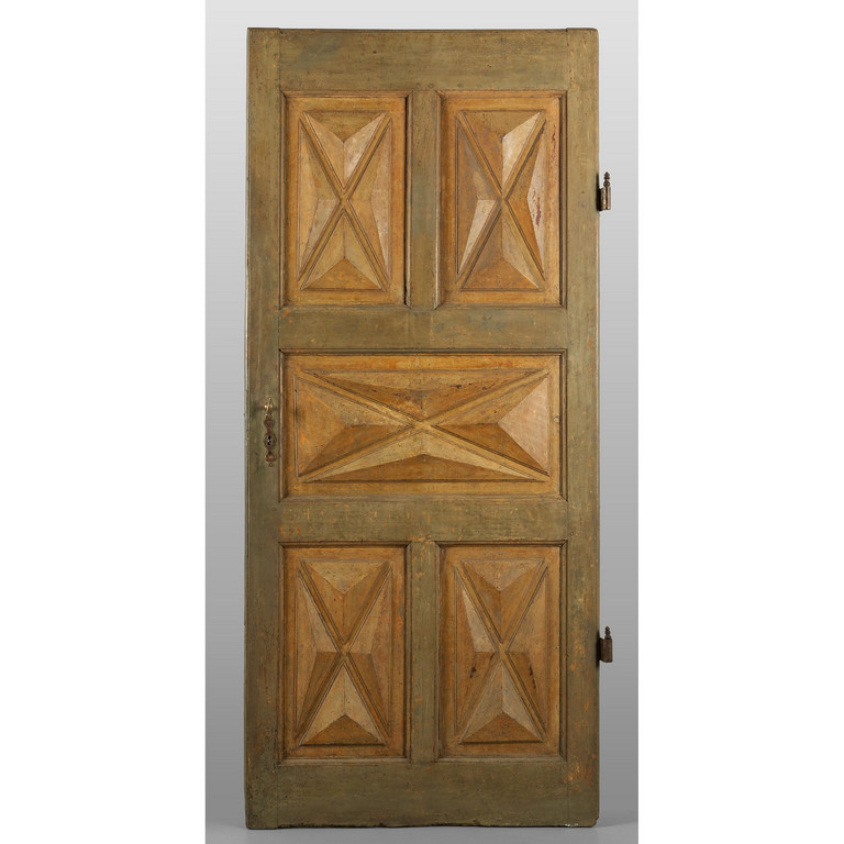 Porta in noce con pannelli scolpiti e laccati a rombi Piemonte inizi sec.XVIII (serrature di epoca)