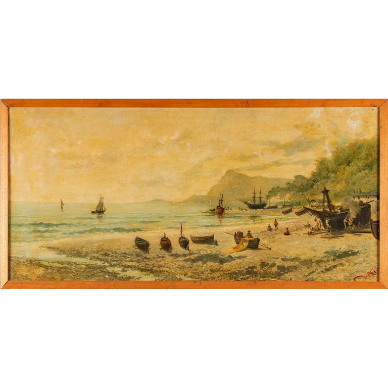 Precedente Lotto 0958 Successivo Aste Boetto - Via Mura dello Zerbino 10R, 16122 Genova ASTA DI ANTIQUARIATO Asta di Antiquariato giovedì 7 marzo 2024 ore 10:30 (UTC +01:00) DIPINTO F.BornMarina con barche olio cm.110x52f.to in b. a ds.