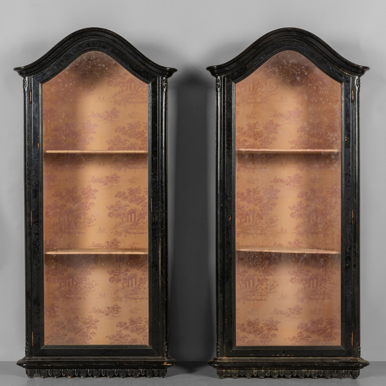 Coppia di grandi vetrine pensili in legno ebanizzato sec.XIX