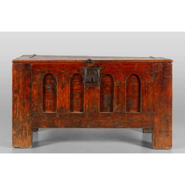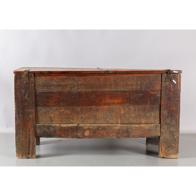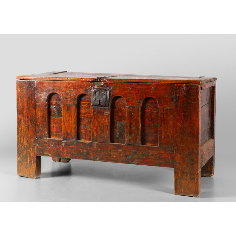 Cassapanca in legno dolce intagliata sul fronte con quattro formelle Piemonte sec.XVIII