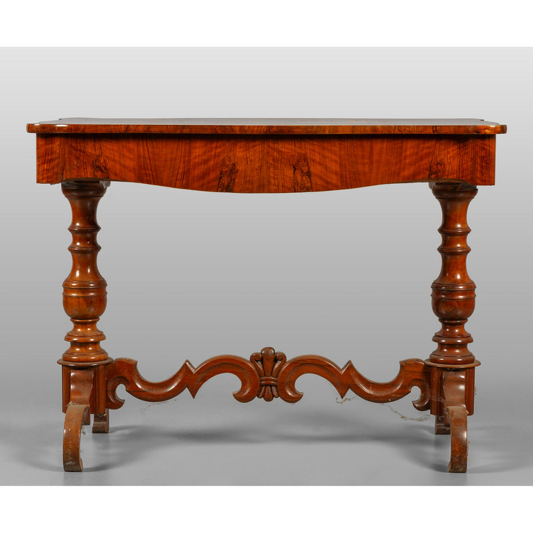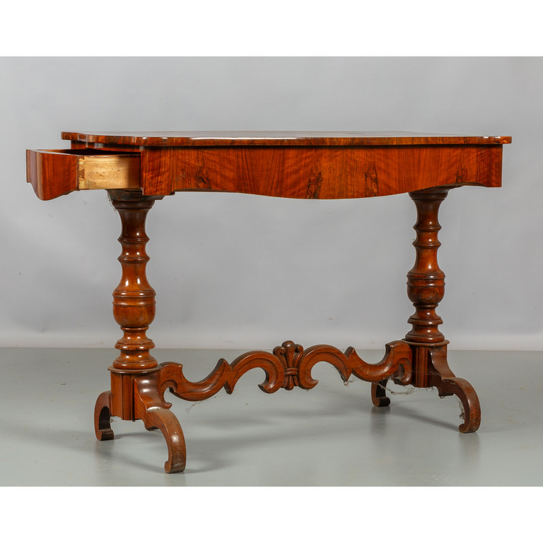 Tavolino Luigi Filippo da centro lastronato in mogano due cassetti estraibili ai lati Francia sec.XIX