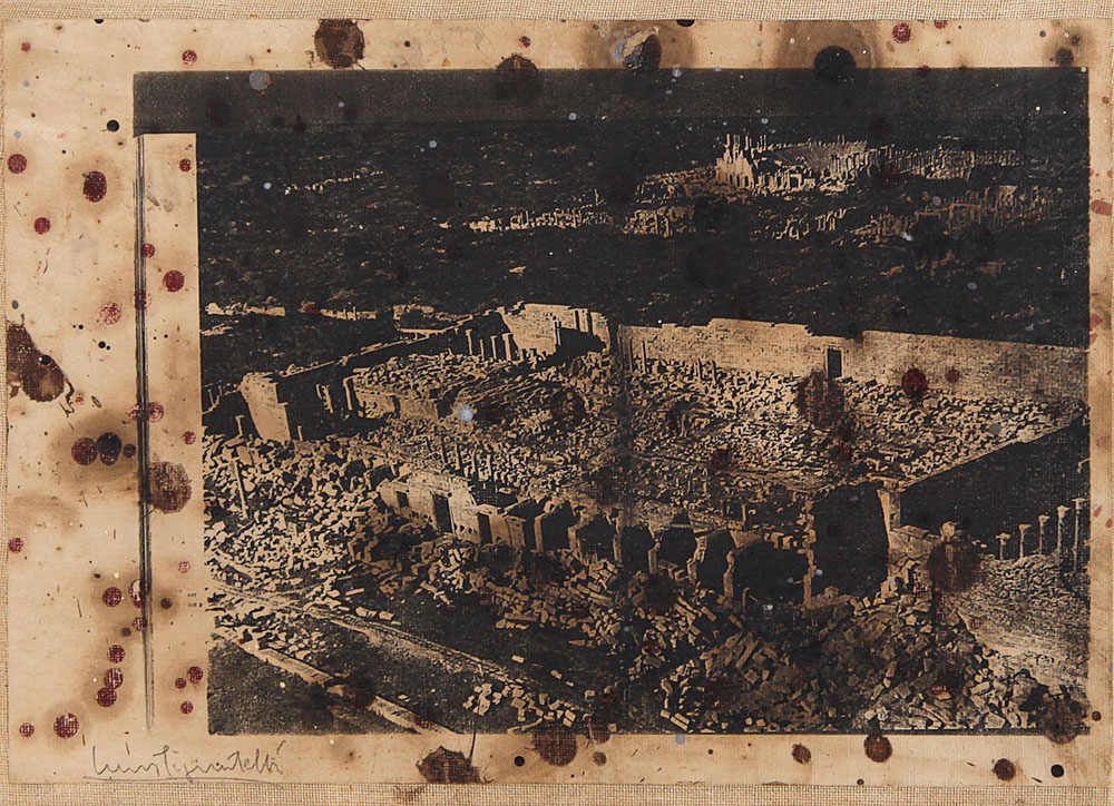 tecnica mista e riporto fotografico su carta intelata cm. 31,5x43,5; firma in basso a sinistra, anno e firma al retro, timbro e firma per provenienza e garanzia della Directionarts (TN) su foto.