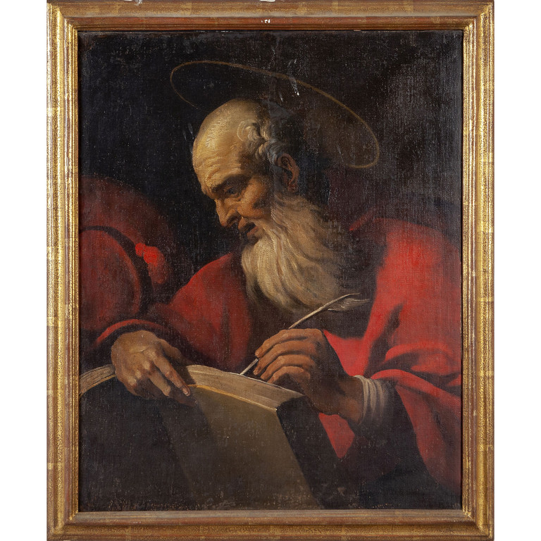 Scuola veneta sec.XVIII 'San Gerolamo' olio cornice coeva in legno dorato