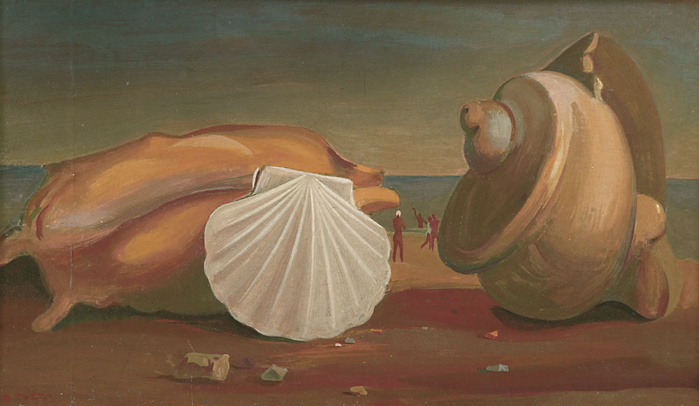 olio su tavola cm. 27x46, firma in basso a sinistra, etichetta della XXI Esposizione Biennale Internazionale D'Arte, Venezia, 1938 al retro, opera registrata presso l'Archivio Generale delle Opere di Mario Tozzi come da dichiarazione su foto, al retro presenta un'altra opera: Bozzetto per ritratti, 1936 olio su tavola cm. 46x27, registrata presso l'Archivio Generale delle Opere di Mario Tozzi come da dichiarazione su altra foto.