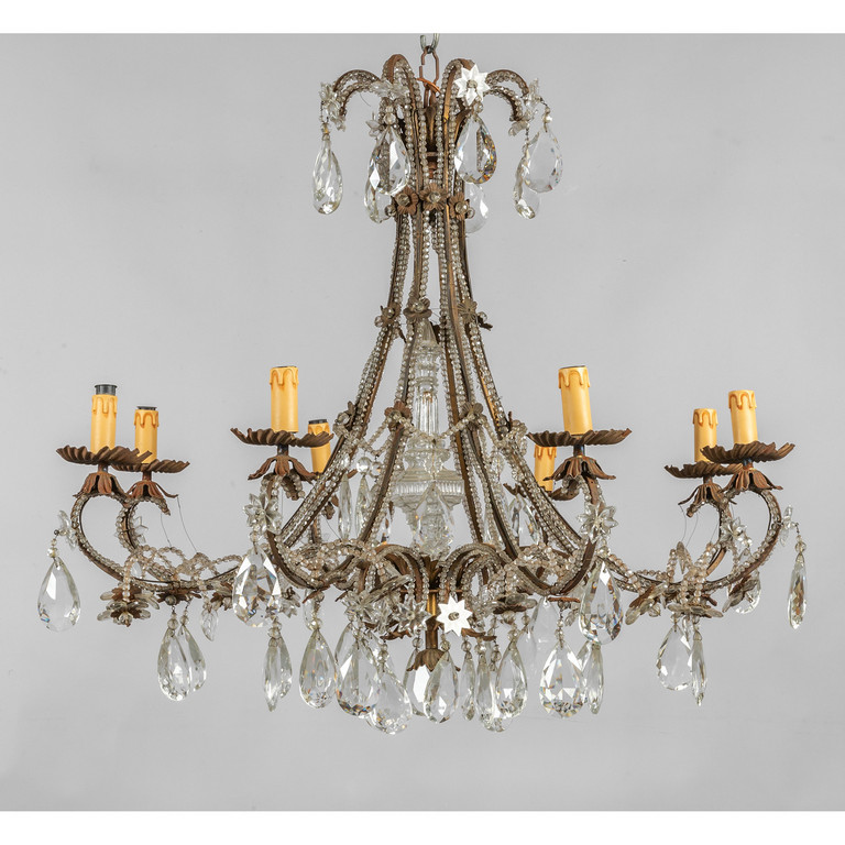 Lampadario a otto luci in ferro con perline in vetro sec.XIX
