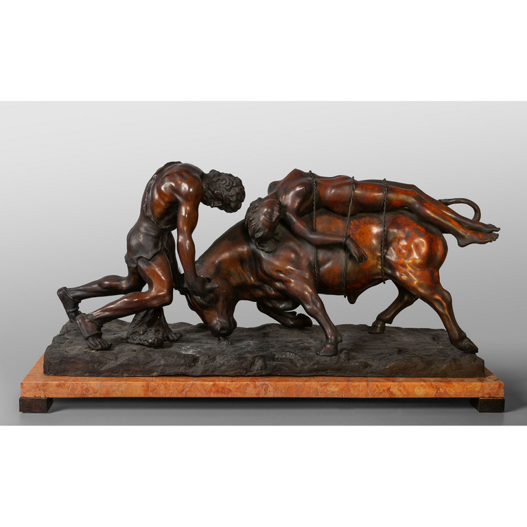 Il supplizio di Dirce grande gruppo in bronzo con base in marmo Francia sec.XIX
