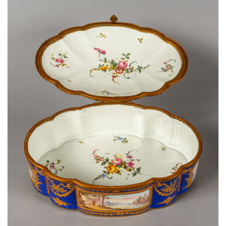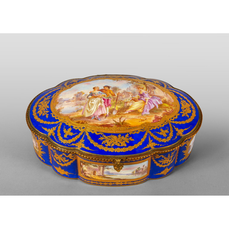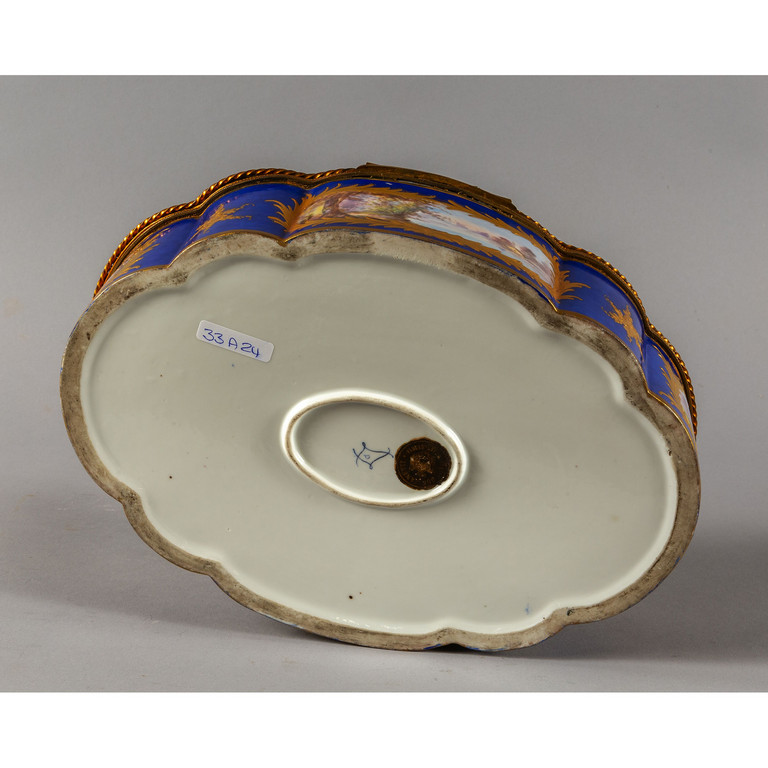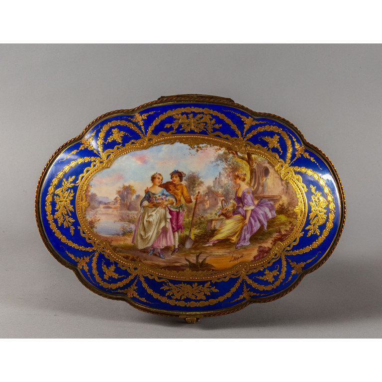 Scatola in porcellana di Sevres decorata con scena galante sul coperchio Francia fine sec.XIX