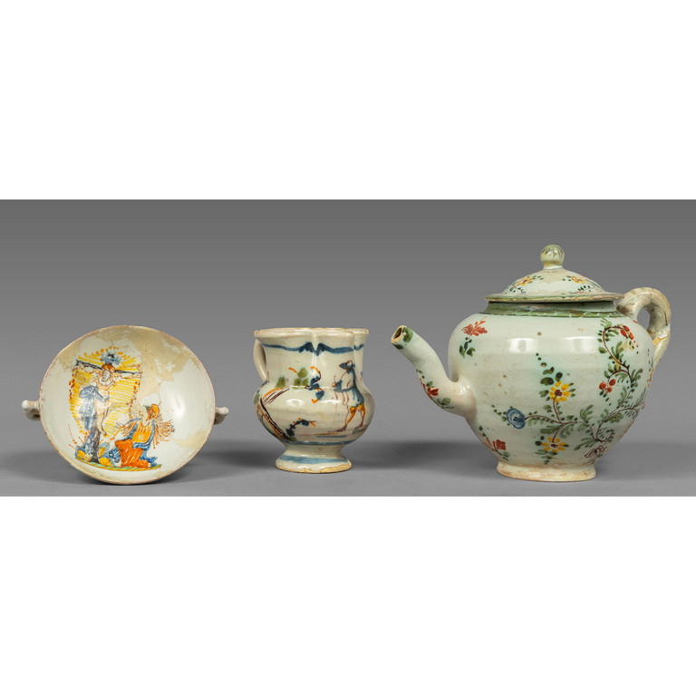 Precedente Lotto 1135 Successivo Aste Boetto - Via Mura dello Zerbino 10R, 16122 Genova ASTA DI ANTIQUARIATO Asta di Antiquariato giovedì 7 marzo 2024 ore 15:00 (UTC +01:00) OGGETTISTICA Lotto composto da tre oggetti in maiolica sec.XVIII
