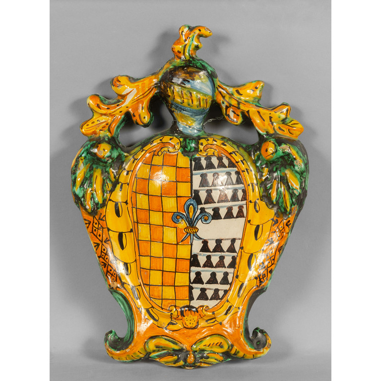 Precedente Lotto 1171 Successivo Aste Boetto - Via Mura dello Zerbino 10R, 16122 Genova ASTA DI ANTIQUARIATO Asta di Antiquariato giovedì 7 marzo 2024 ore 15:00 (UTC +01:00) OGGETTISTICA Stemma in maiolica policroma Montelupo sec.XVIIIcm. 36x50