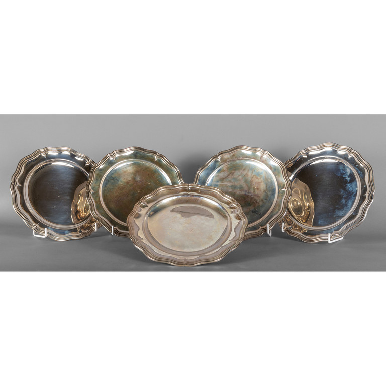 Precedente Lotto 1178 Successivo Aste Boetto - Via Mura dello Zerbino 10R, 16122 Genova ASTA DI ANTIQUARIATO Asta di Antiquariato giovedì 7 marzo 2024 ore 15:00 (UTC +01:00) OGGETTISTICA Cinque piattini in argento in stile baroccodiam.cm.20 gr.900