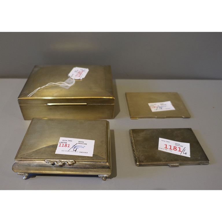 Precedente Lotto 1181 Successivo Aste Boetto - Via Mura dello Zerbino 10R, 16122 Genova ASTA DI ANTIQUARIATO Asta di Antiquariato giovedì 7 marzo 2024 ore 15:00 (UTC +01:00) OGGETTISTICA Tre scatole in argento e una cornice