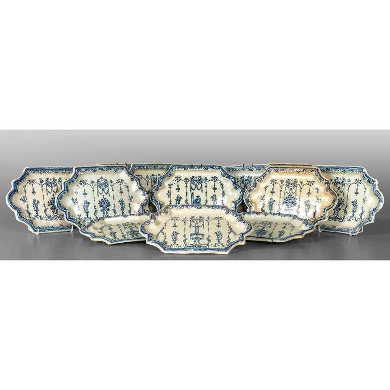 Dodici piccoli vassoi in ceramica decorazione bianca e blu Torino sec.XVIII