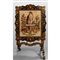Parafuoco in legno laccato a fondo nero con decorazioni dorate all'interno pannello a piccolo punto raffigurante un aquila