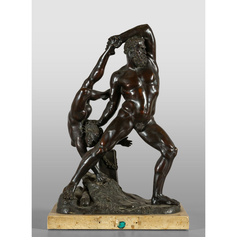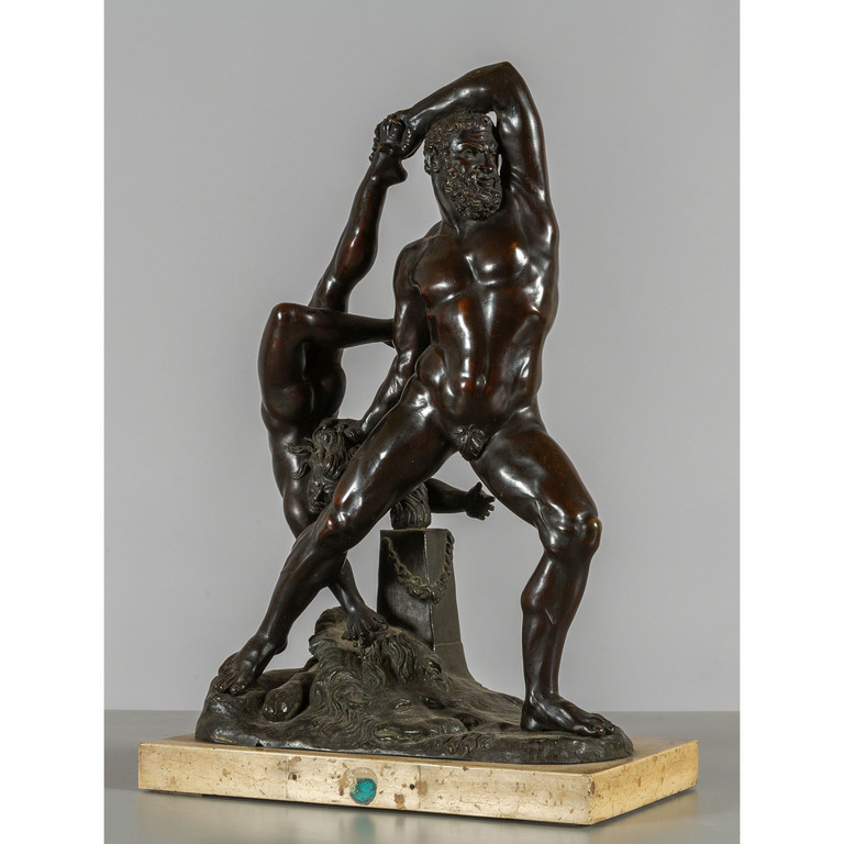 Ercole e Lica scultura in bronzo a patina scura da Canova poggiante su base in marmo