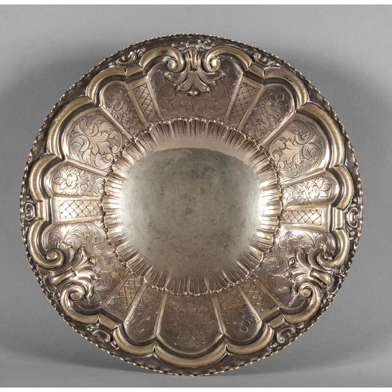 Precedente Lotto 1245 Successivo Aste Boetto - Via Mura dello Zerbino 10R, 16122 Genova ASTA DI ANTIQUARIATO Asta di Antiquariato giovedì 7 marzo 2024 ore 15:00 (UTC +01:00) OGGETTISTICA Alzata in argento brodo riccamente sbalzatodiam.cm.30 5xh.6 gr.500