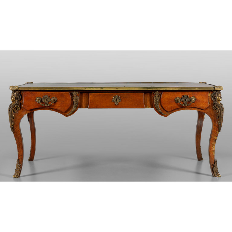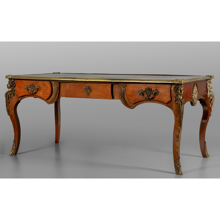Grande diplomatica in stile Luigi XV lastronata ricca decorazione in bronzo piano in pelle Francia sec.XIX