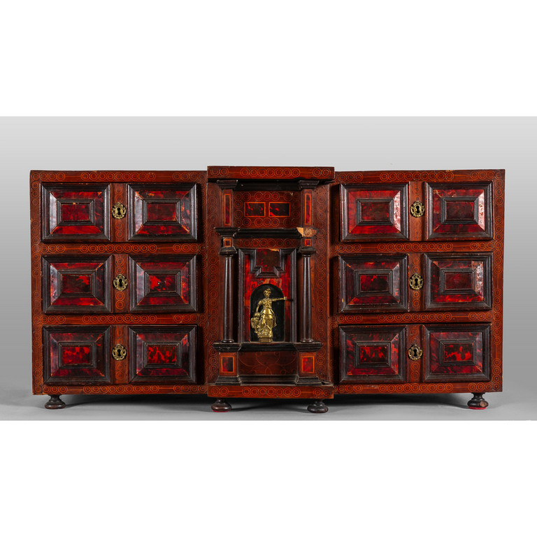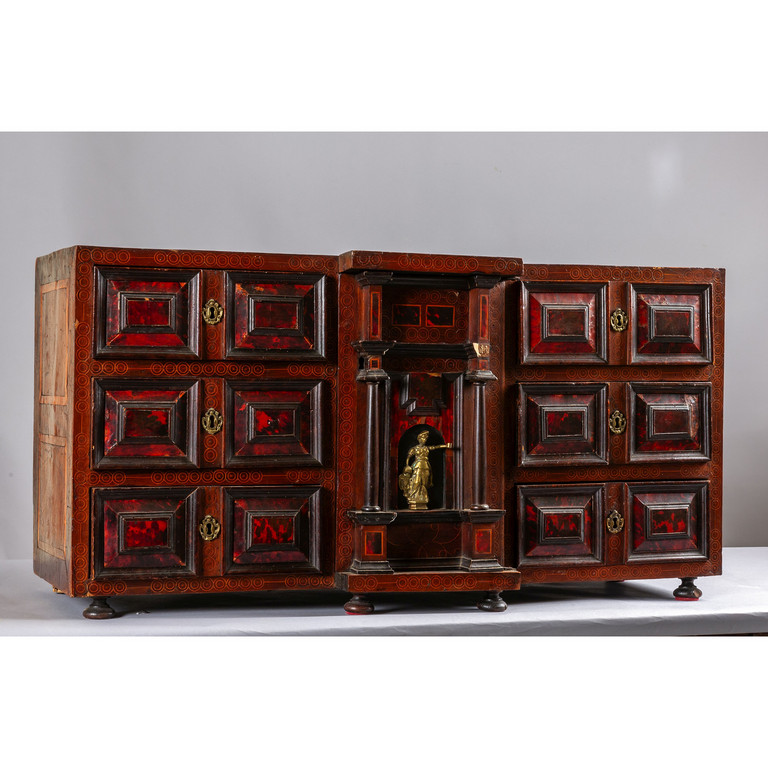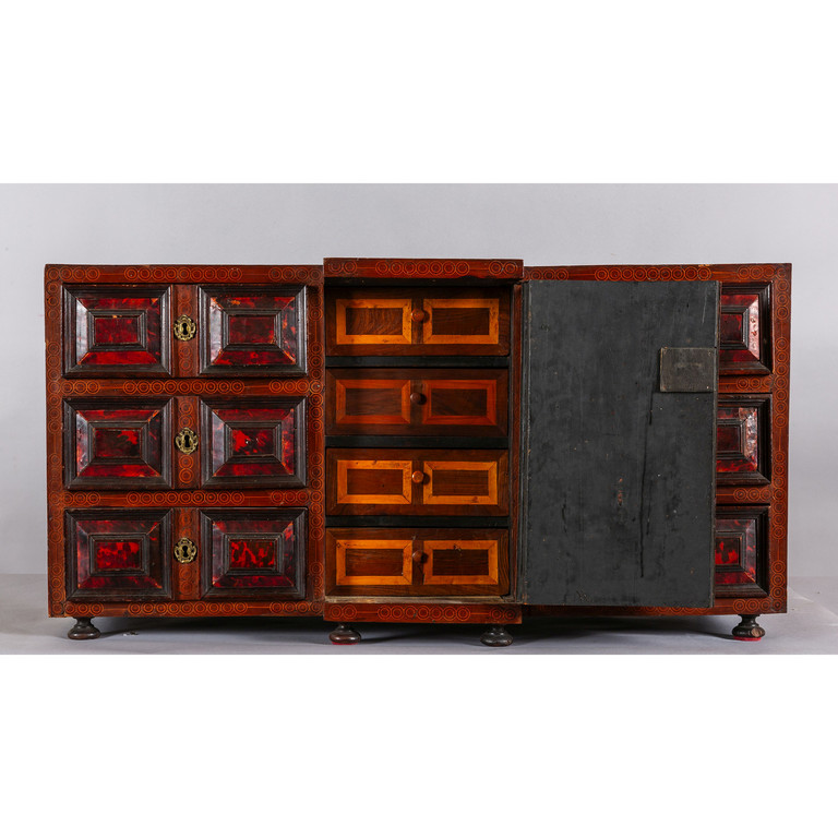 Monetiere in legno intarsiato cassetti lastronati in tartaruga sec.XVII