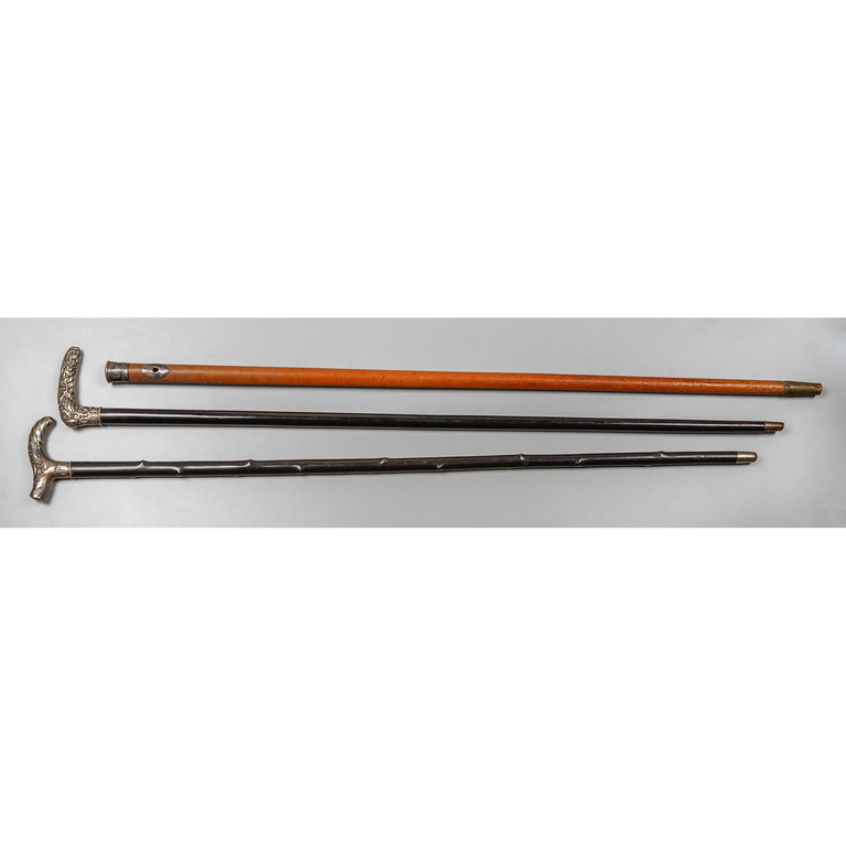Precedente Lotto 1306 Successivo Aste Boetto - Via Mura dello Zerbino 10R, 16122 Genova ASTA DI ANTIQUARIATO Asta di Antiquariato giovedì 7 marzo 2024 ore 15:00 (UTC +01:00) OGGETTISTICA Tre bastoni con manico in argentoh.cm.90 91 e 92