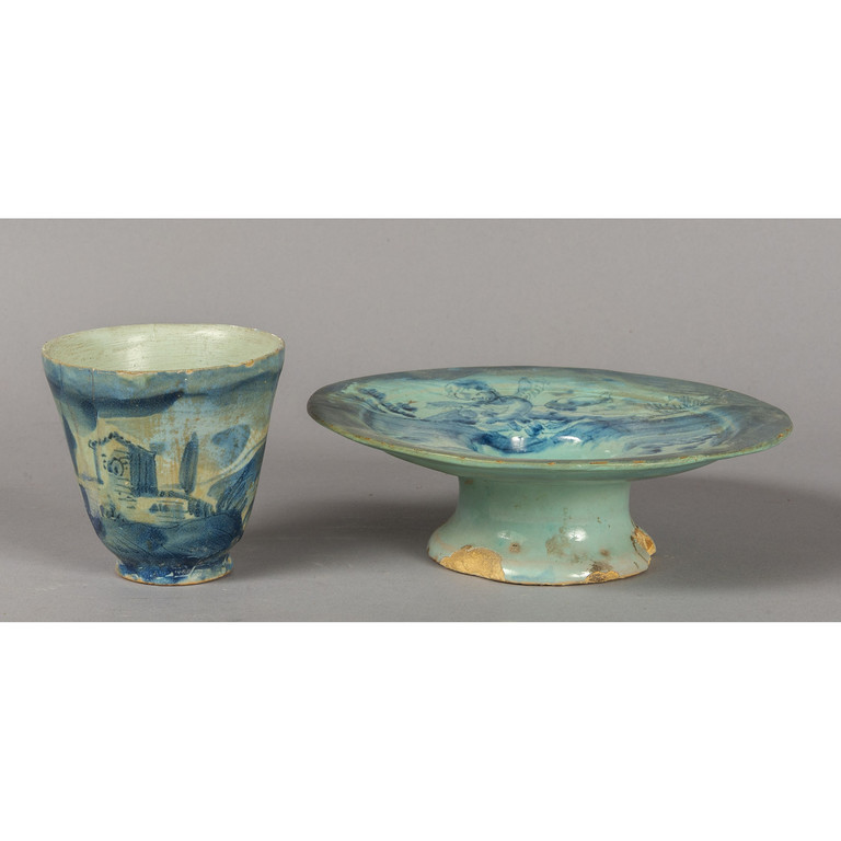 Trembleuse in maiolica bianca e blu Savona inizi sec.XVIII