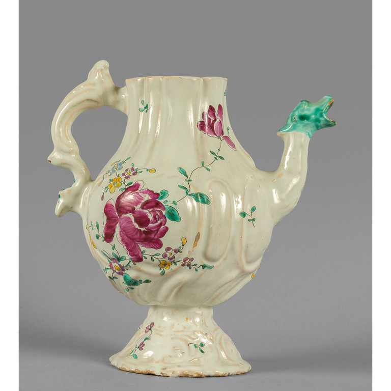 Versatoio in maiolica policroma con decoro alla rosa Savona sec.XVIII