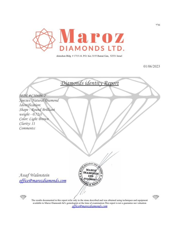 Lotto 73 | DIAMANTE 0,72 CT CHIARO MARRONE - I1 - C30606-2