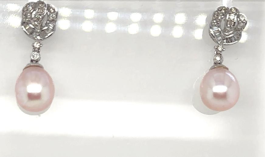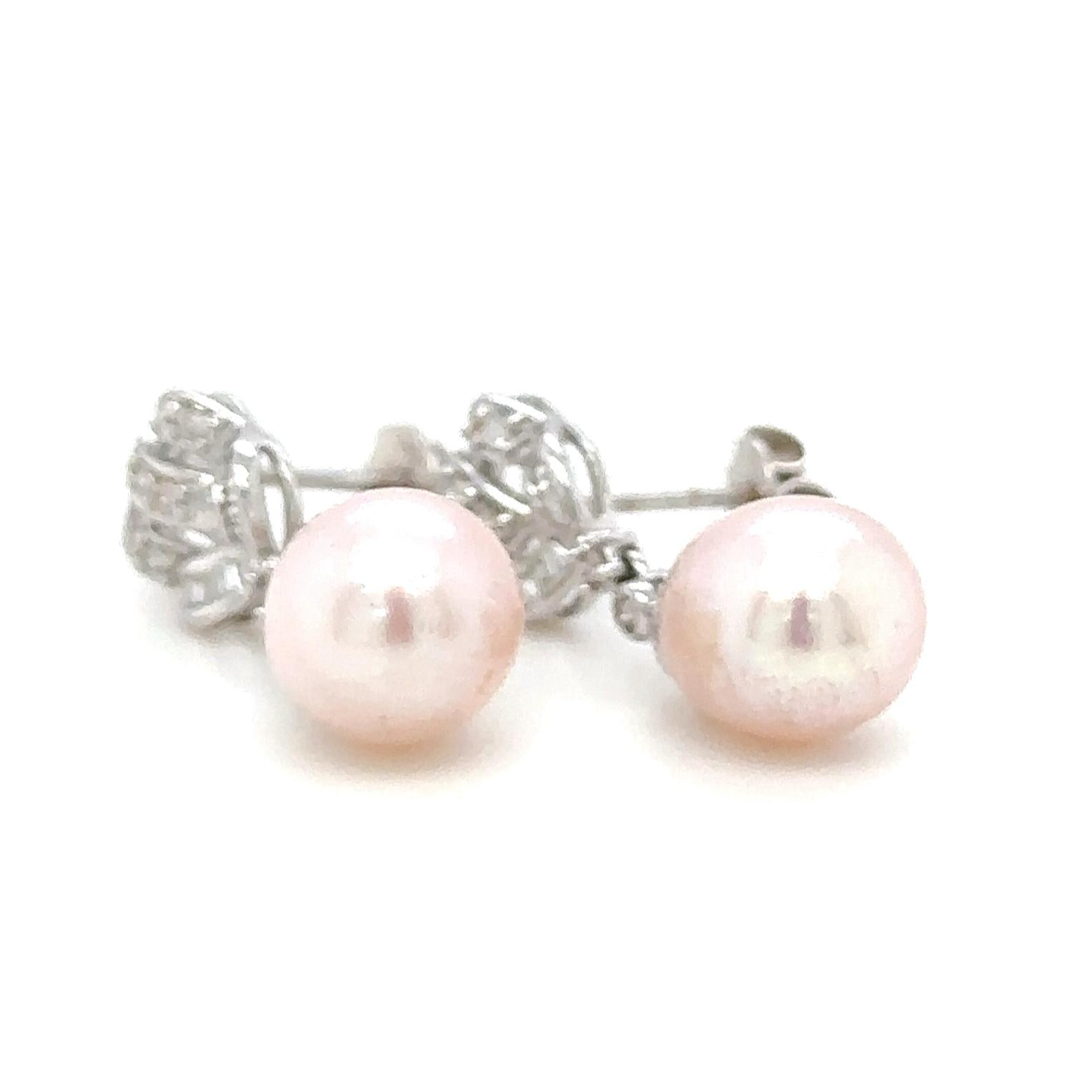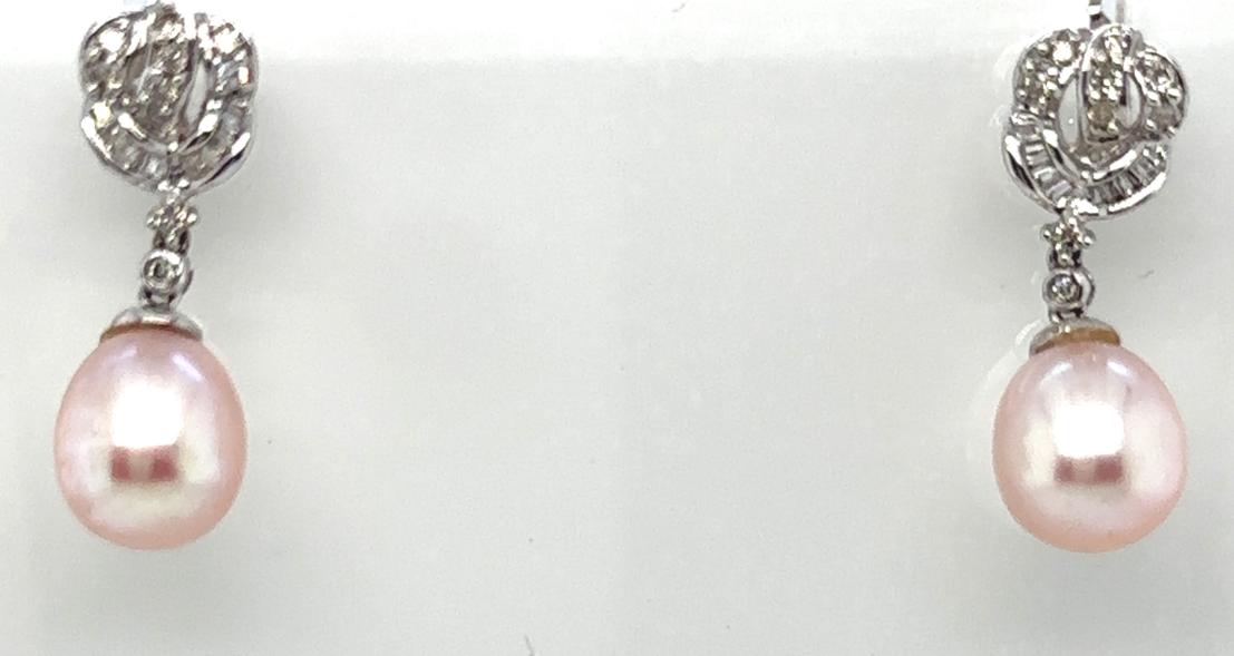 ORECCHINI IN ORO BIANCO 18K 4.21 GR CON DIAMANTI PER E PERLE - YZ547