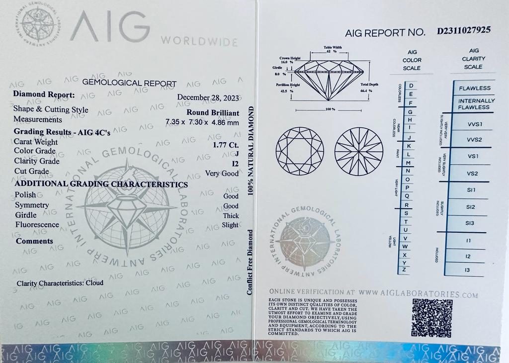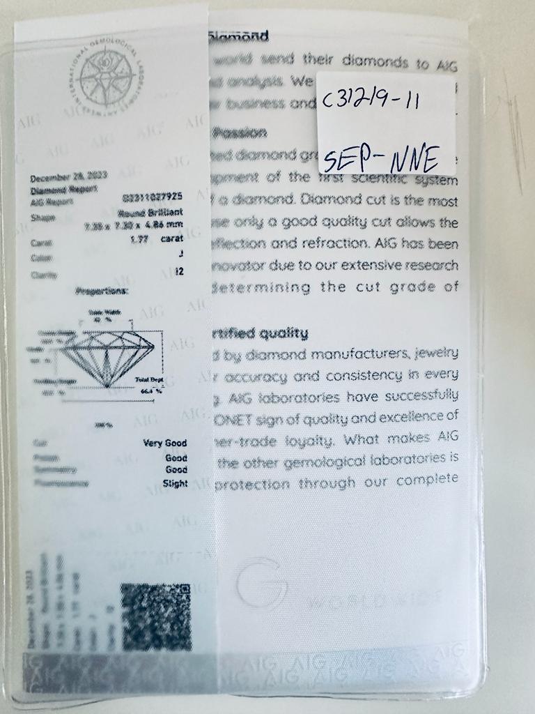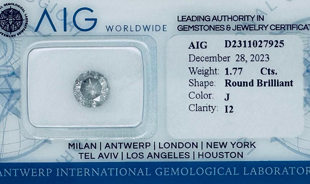 DIAMANTE 1,77 CARATI COLORE J - PUREZZA I2 - TAGLIO BRILLANTE - CERTIFICATO AIG - C31219-11