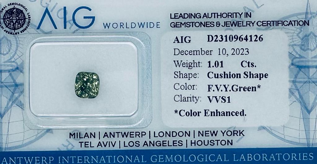 Lotto 180 | DIAMANTE 1,01 CARATI FANCY GIALLOGNOLO VERDE* VIVIDO - VVS1 - C31202-2