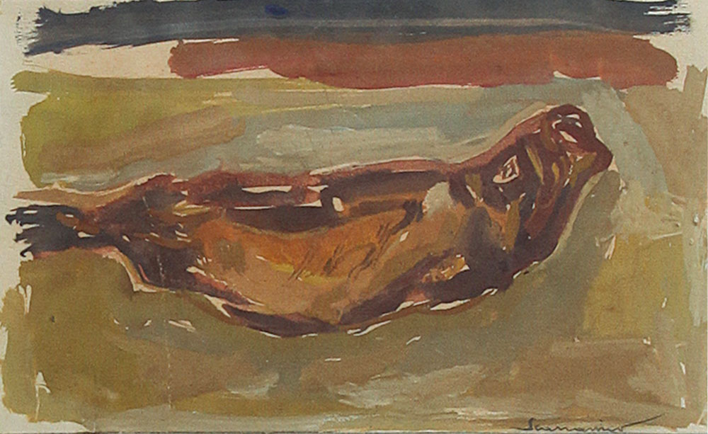 tecnica mista carta cm. 15x25,5, firma in basso a destra, dichiarazione d'autenticità a cura di Giorgina Graglia Scanavino su foto.