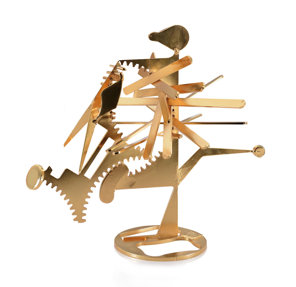 acciaio dorato (oro 24 kt) cm. 45x50,5x31,5; pezzo unico, sigla alla base, certificato d'autenticità dell'artista su foto.