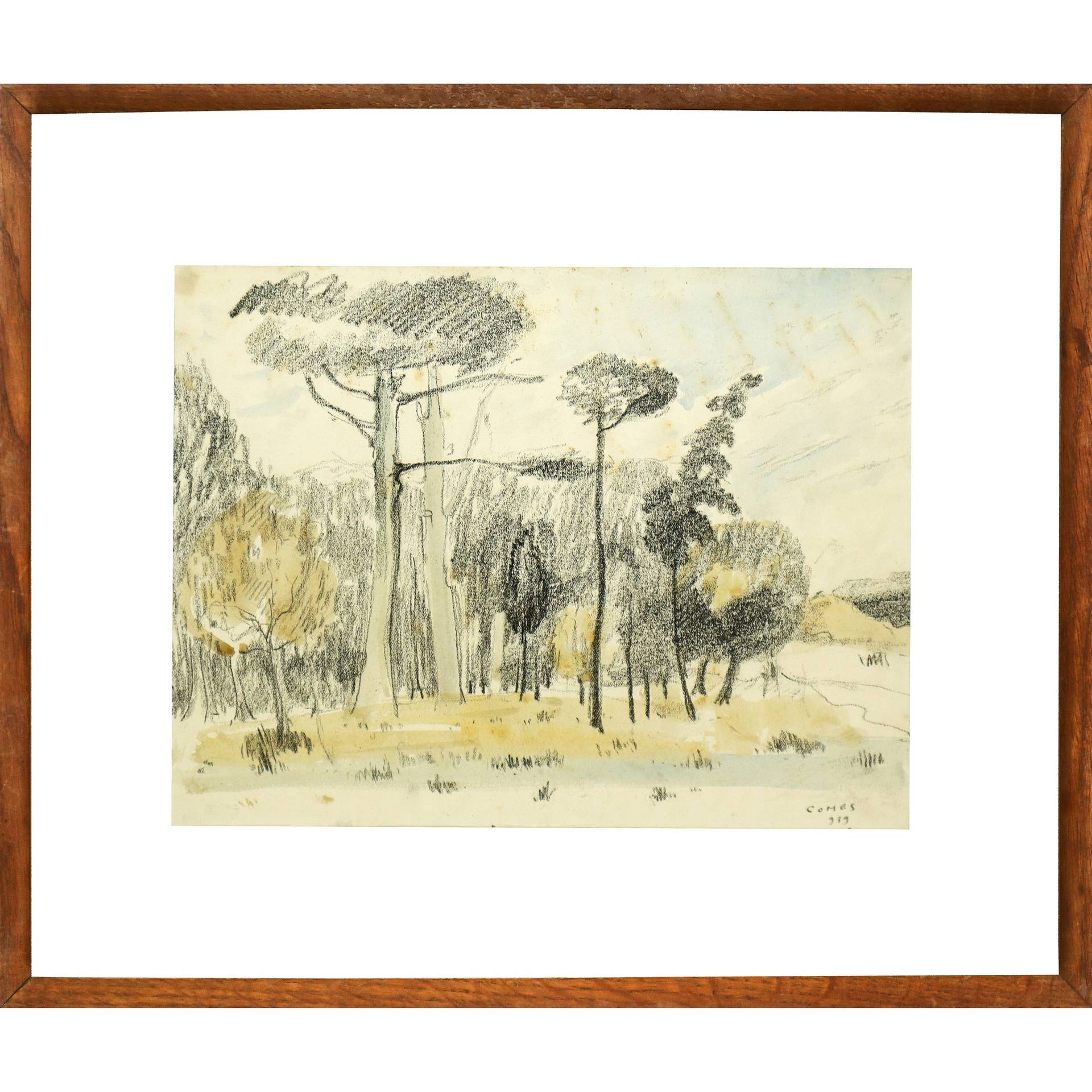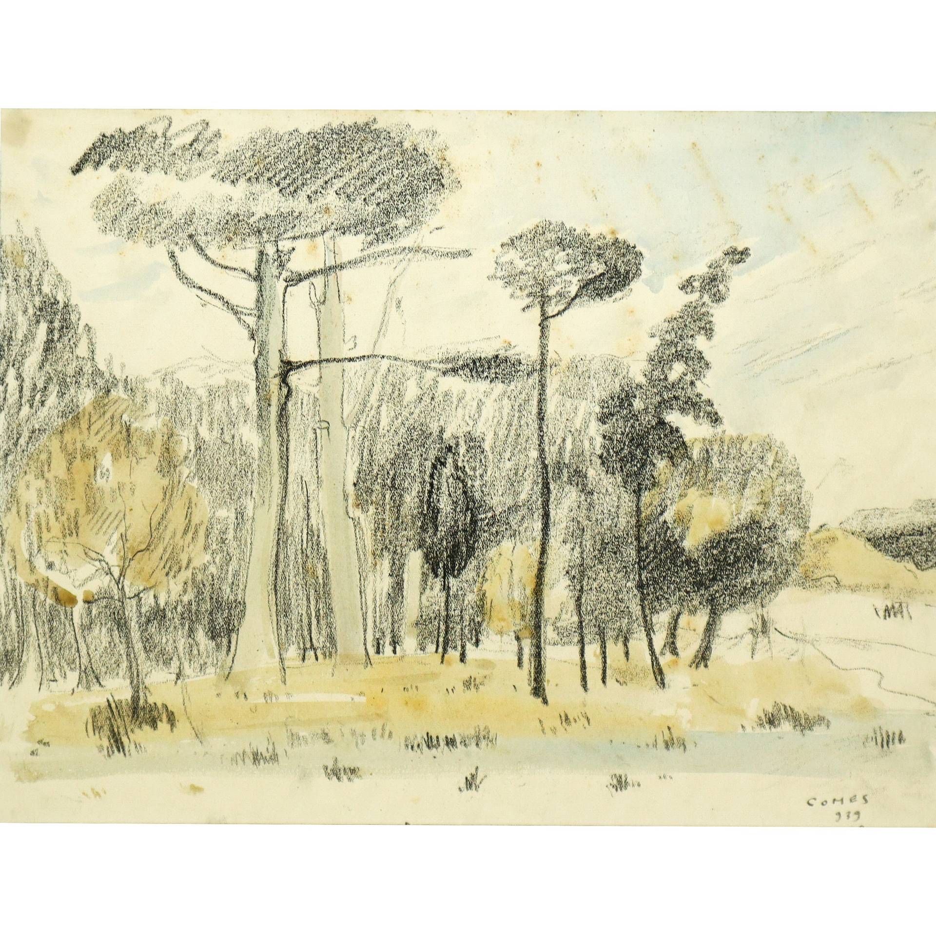 Carmelo Comes (Catania 1905-Catania 1988) - Paesaggio, 1939 H cm 23x21 - in cornice H cm 39x46 Disegno in carboncino acquarellato Firmato in basso a destra e datato