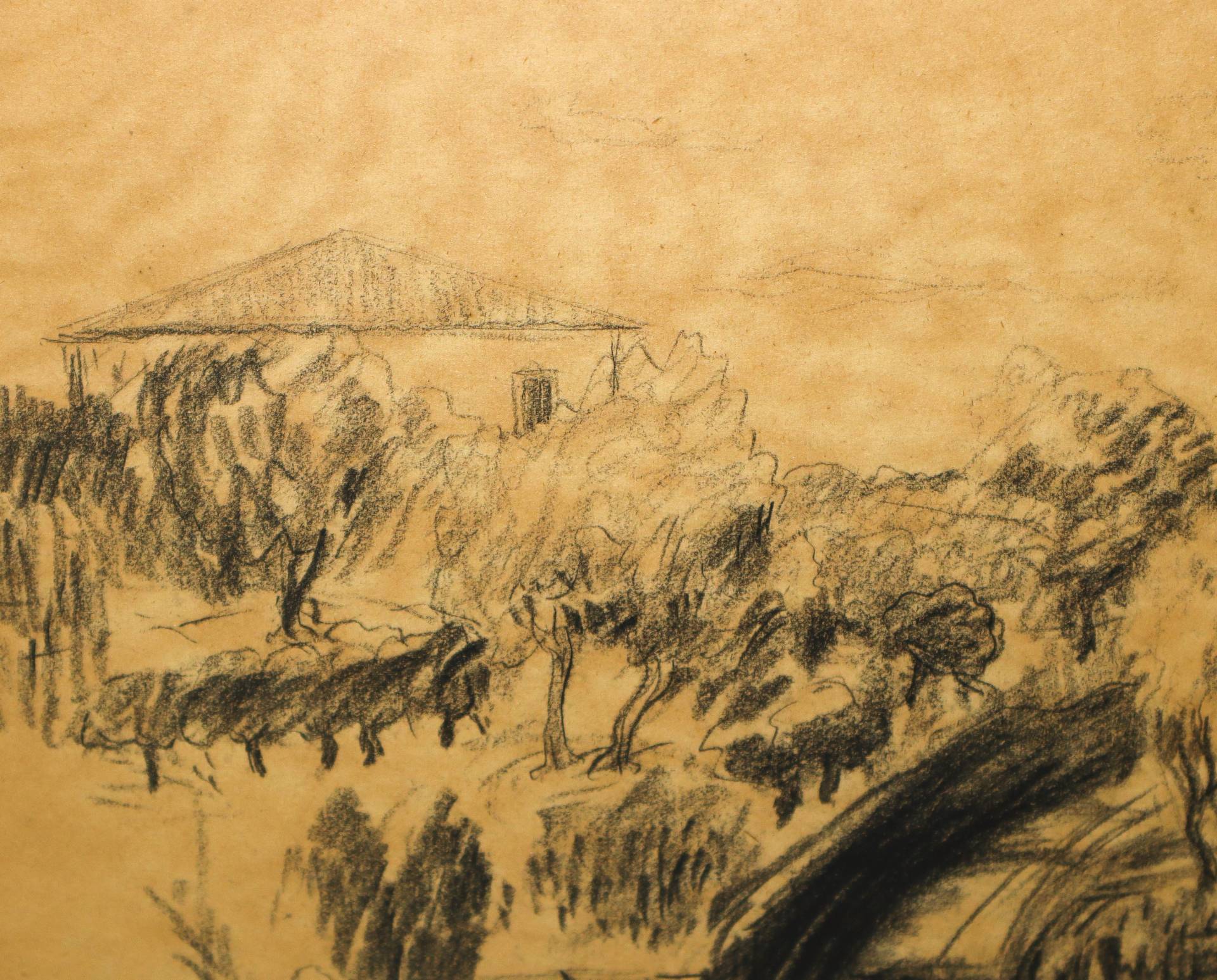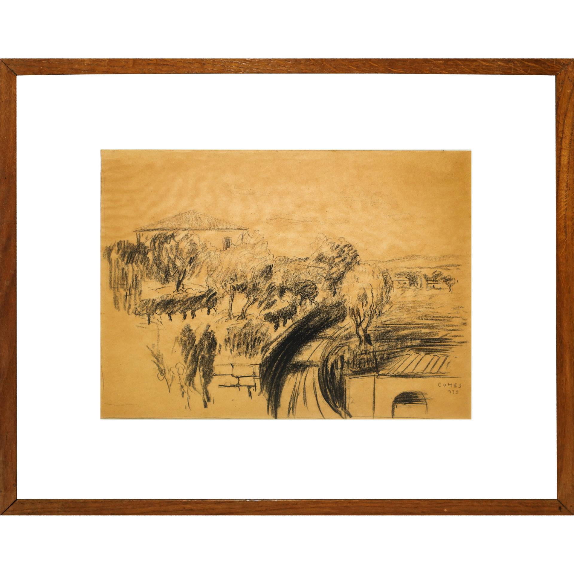 Carmelo Comes (Catania 1905-Catania 1988) - Paesaggio, 1939 H cm 22,5x29,5 - in cornice H cm 38x46 Disegno a carboncino Firmato in basso a destra e datato