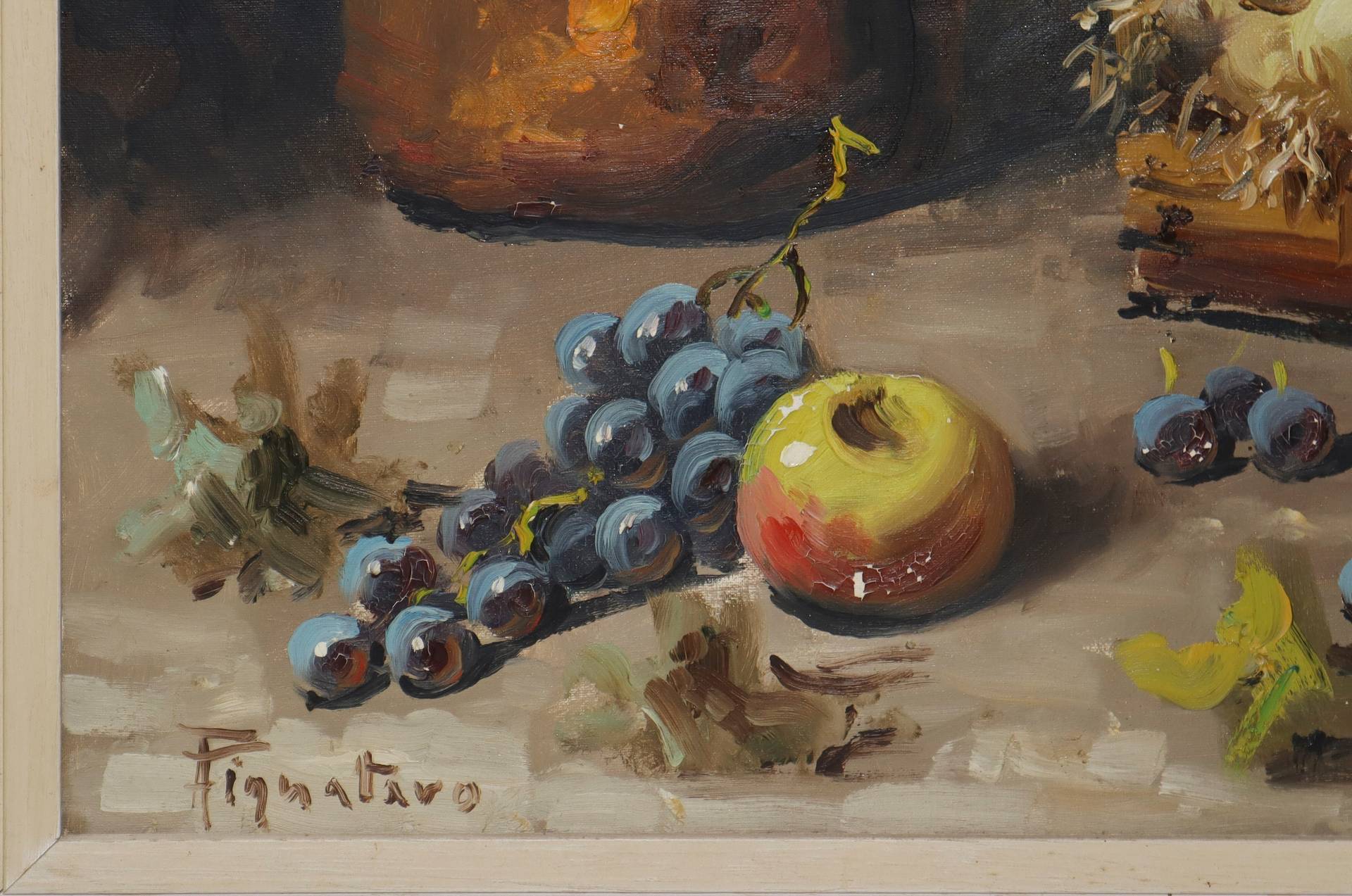 Pignataro (Siena 1943) - Natura morta di frutta cm 50 x 70, in cornice 76 x 86 olio su tela Firmato in basso a sinistra