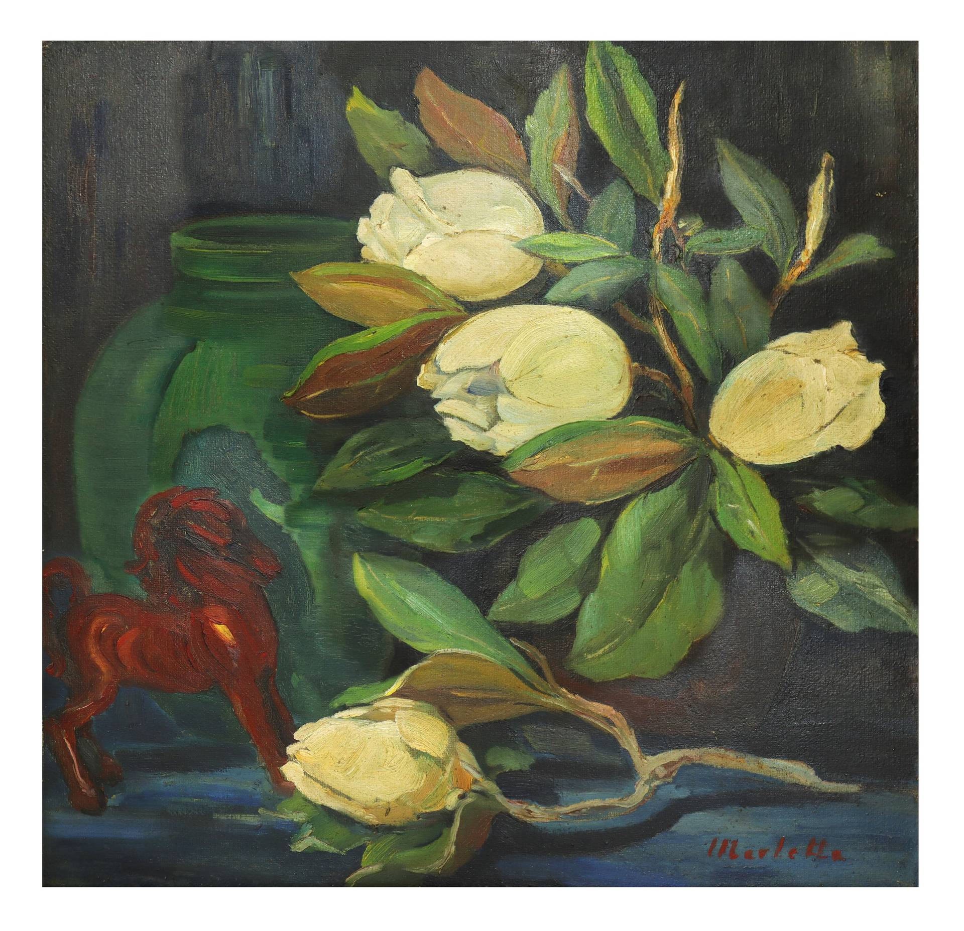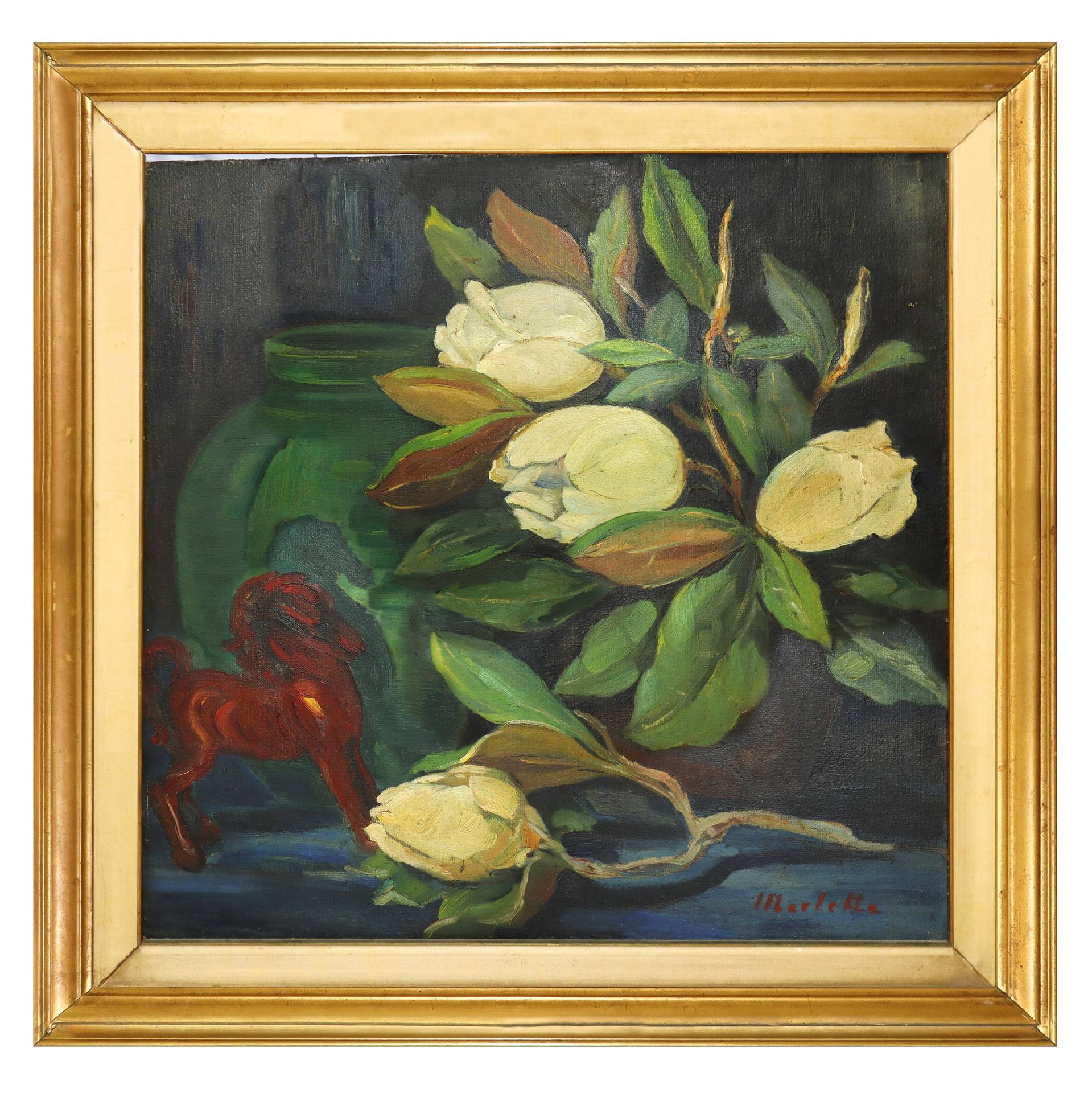 Giuseppe Marletta (Catania 1892-Valverde 1985) - Natura morta di fiori di magnolia