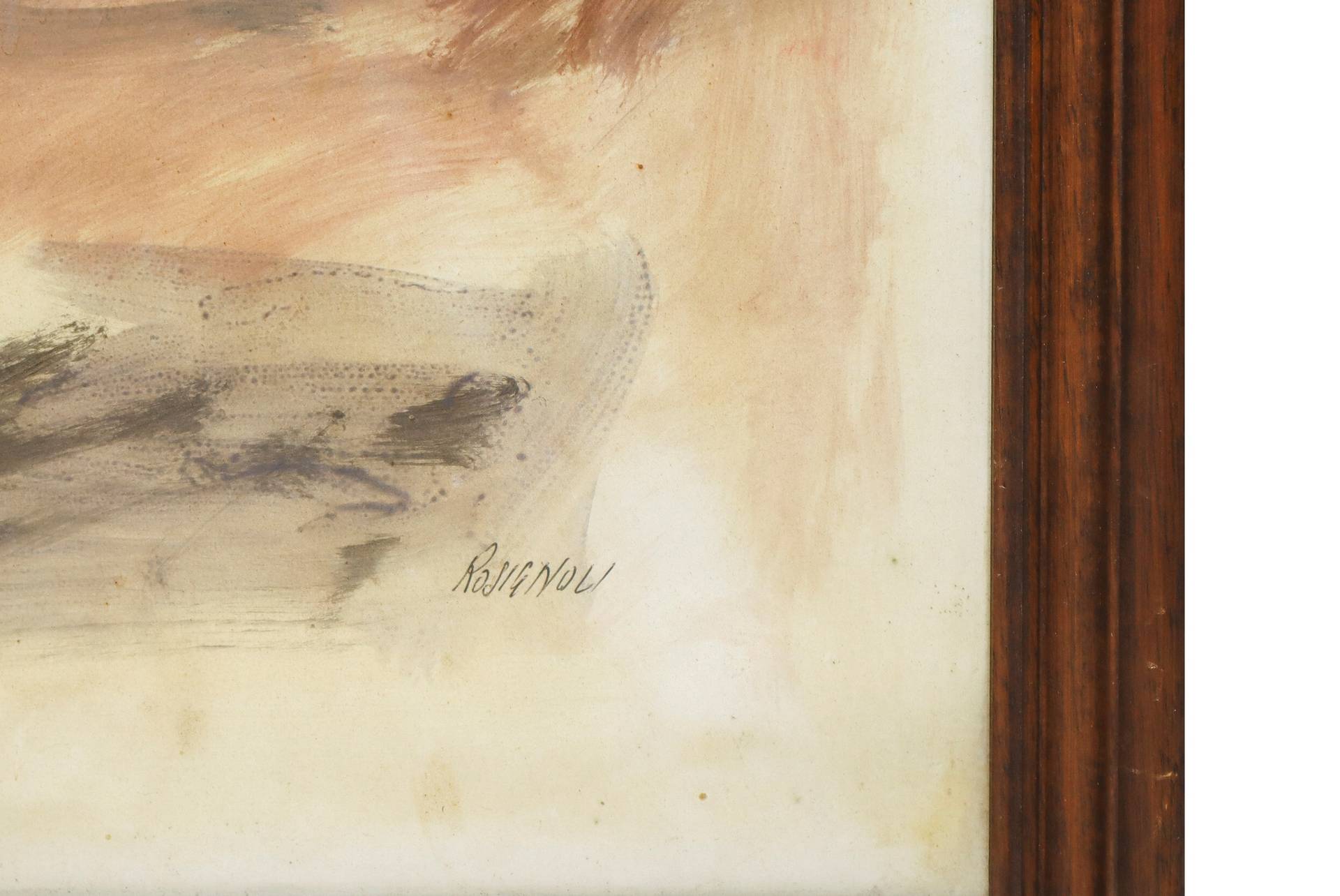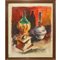 Natura morta di bottiglie con lume e macinino 64x50 in cornice cm 69x55 Acquerello su carta Firmato Romanov
