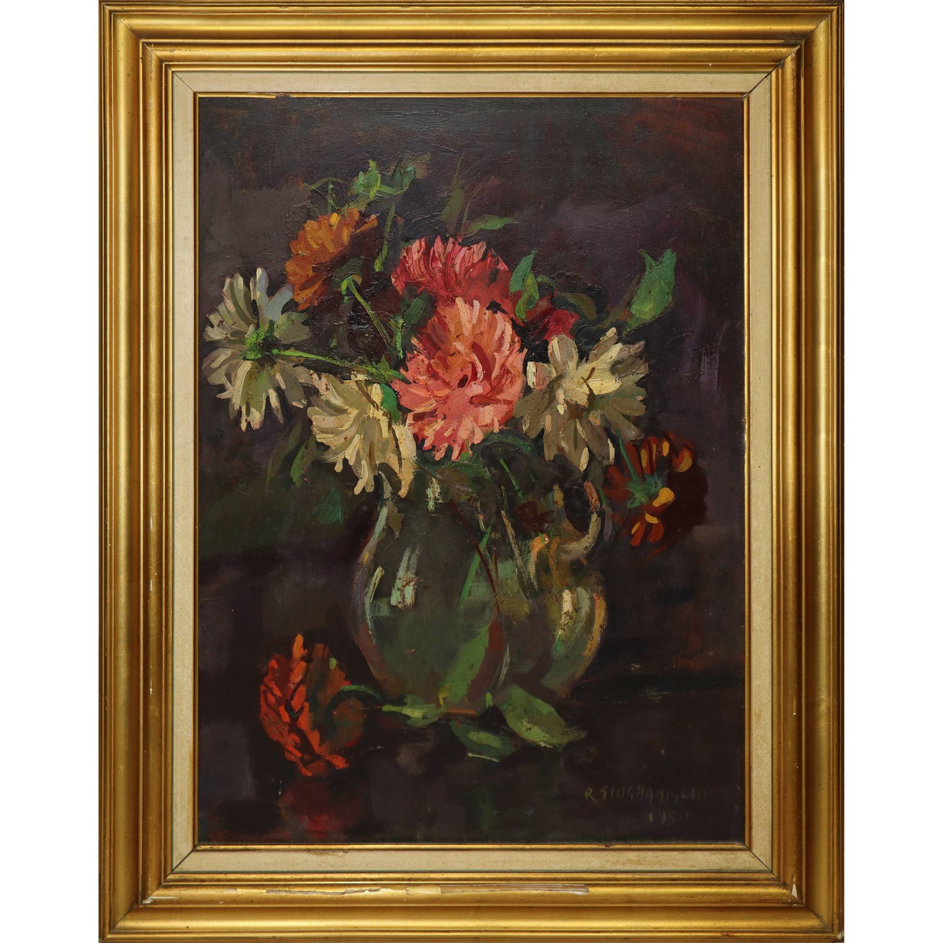 Natura morta, 1950 cm 50,5x36,5, in cornice 62,5x48,5 Olio su tavola Firmato Scognamiglio in basso a destra