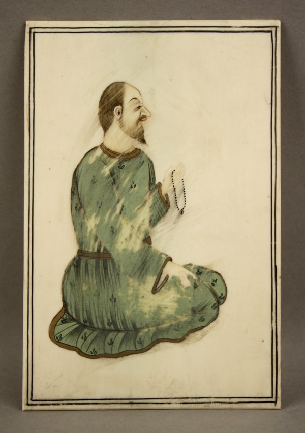Placca in avorio finemente dipinto raff. ''SANTONE''. Area Indo Pakistana. XX...