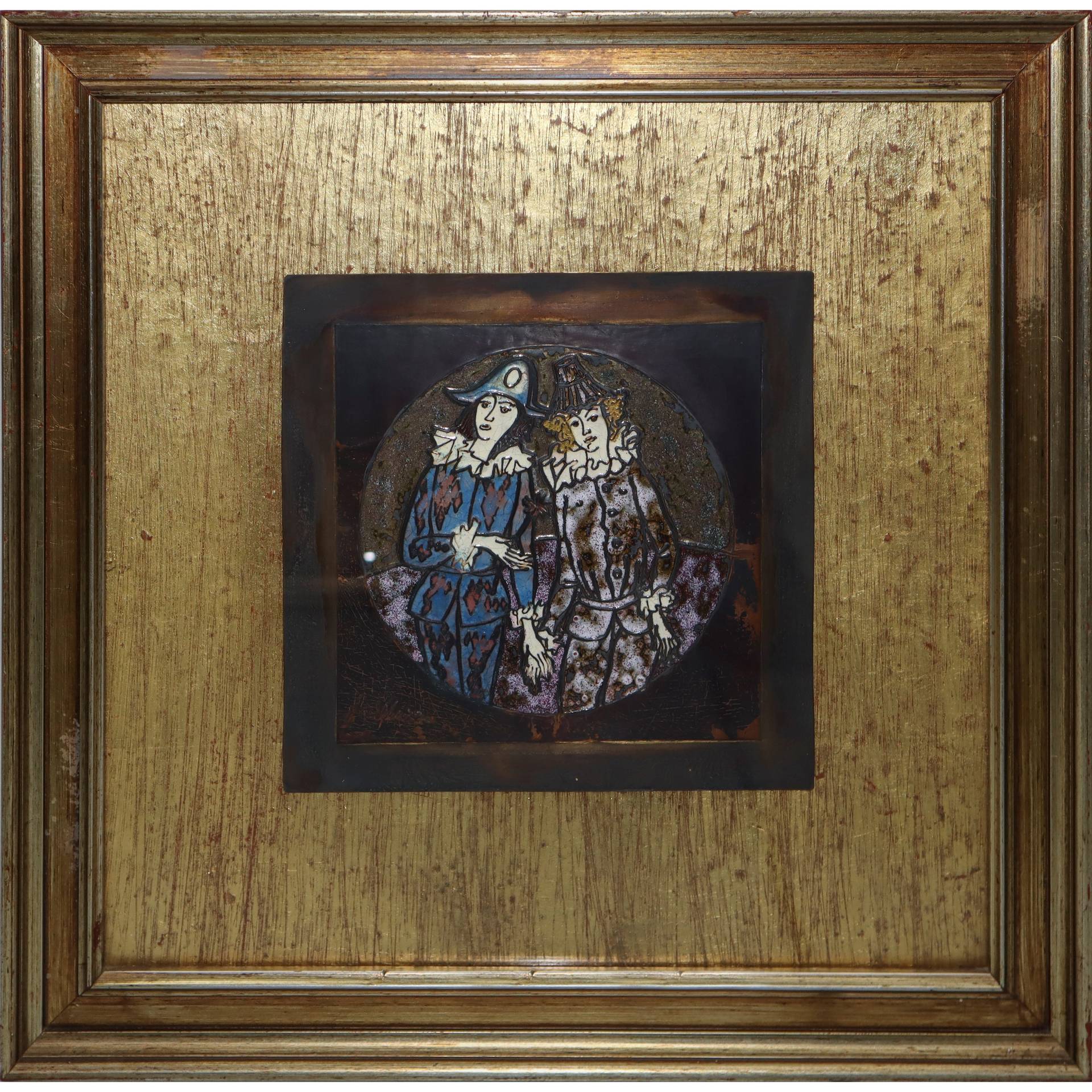 Sebastiano Milluzzo (Catania 1915-Catania 2011) - Coppia di figure in maschera di Carnevale cm 16x16 in cornice cm 40x40 Firmato in basso a sinistra Firmato in basso a sinistra
