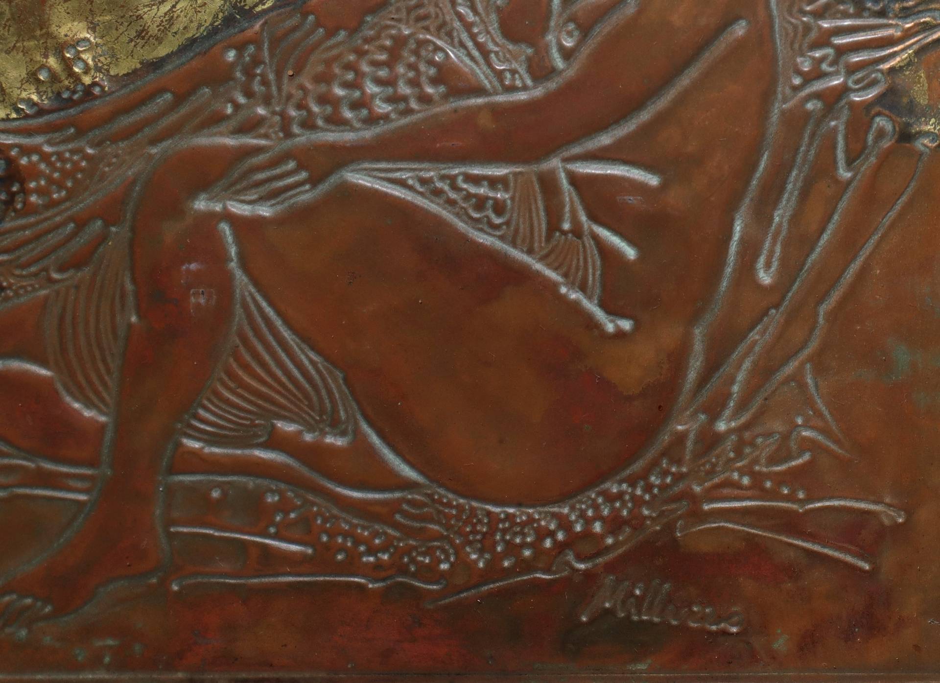 Sebastiano Milluzzo (Catania 1915-Catania 2011) - Nudo di donna con cigno cm 20x20 in cornice cm 51x51 rame sbalzato