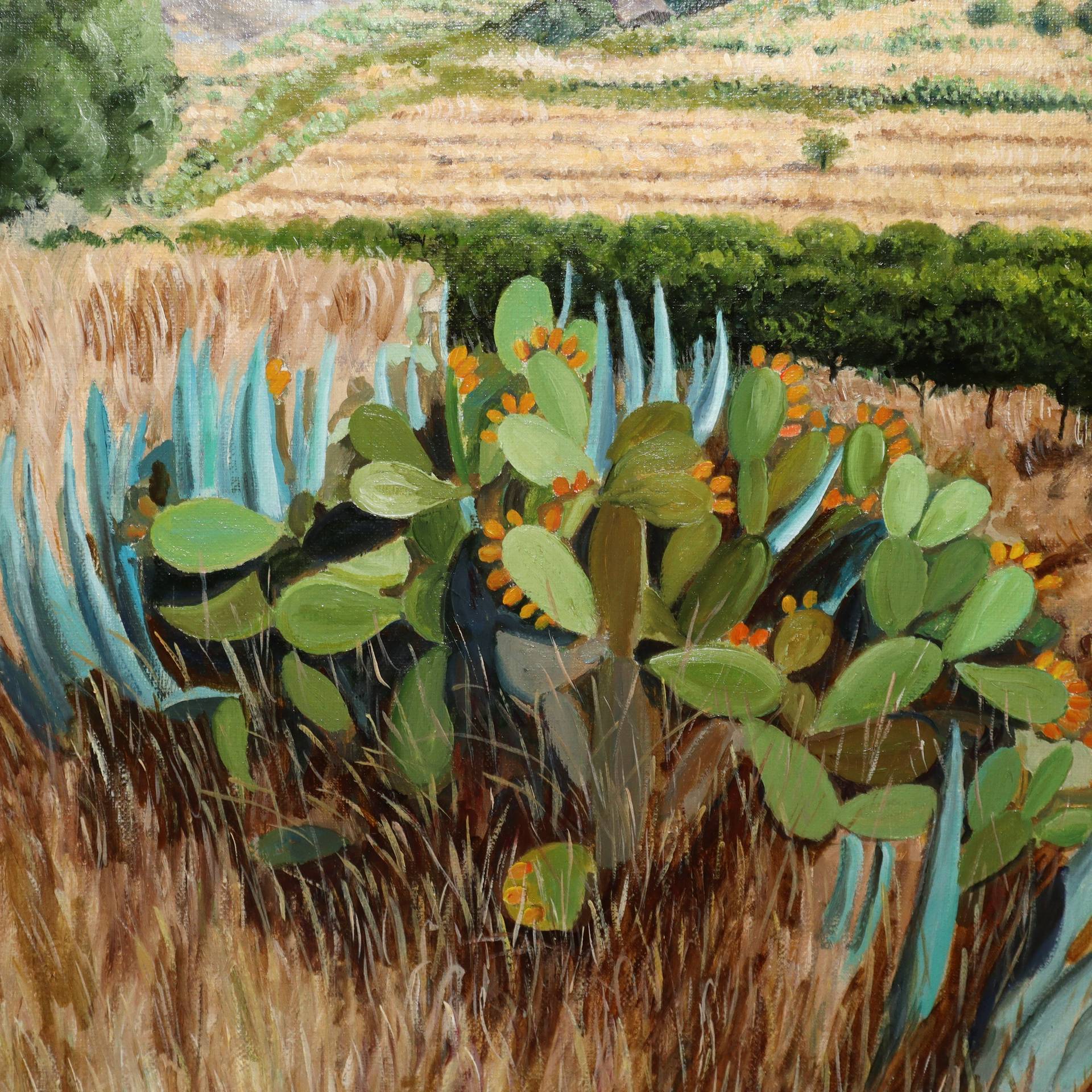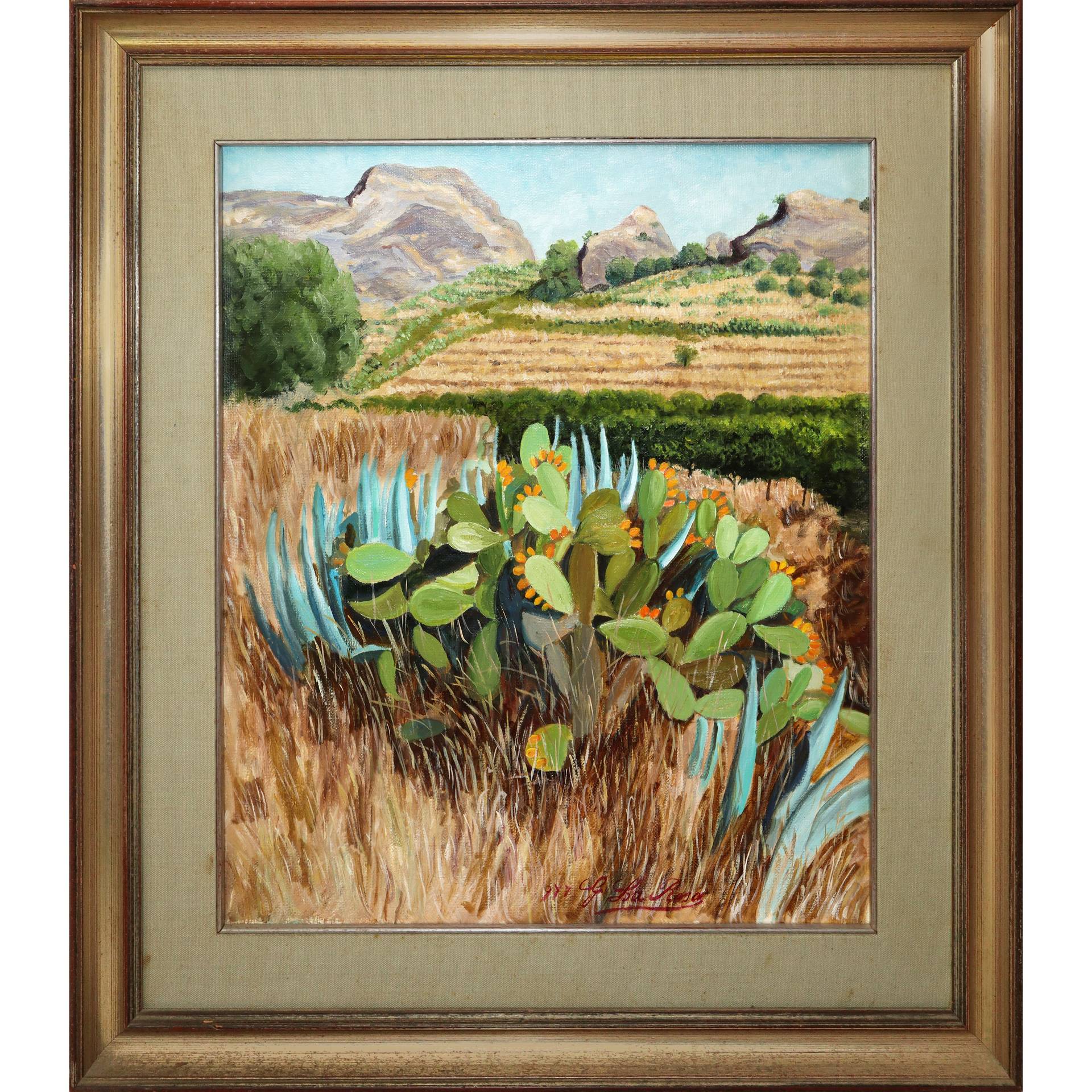 Paesaggio con fichi d'india 60x50 in cornice c,m 79x69 Olio su tela Firmato in basso G. La Rosa