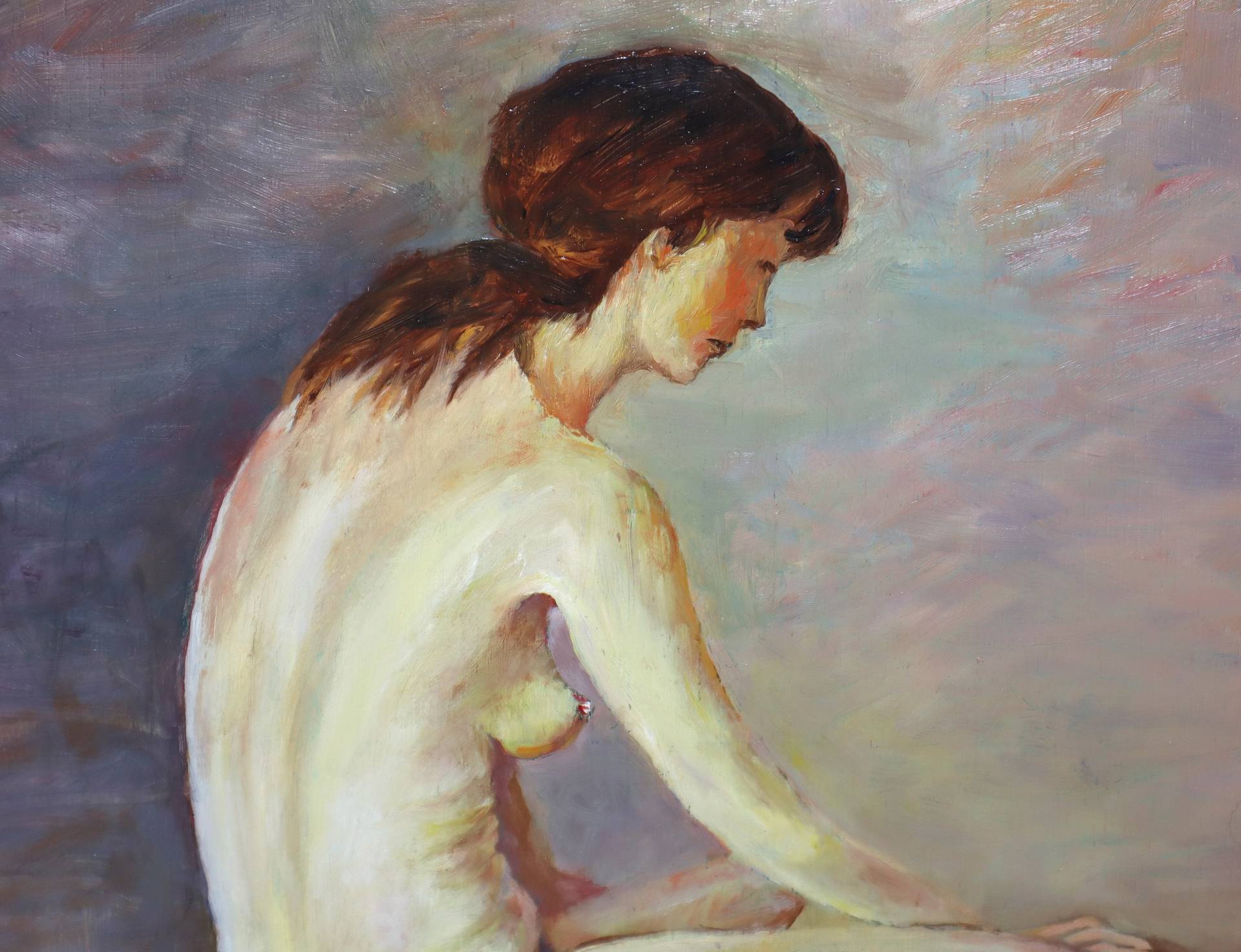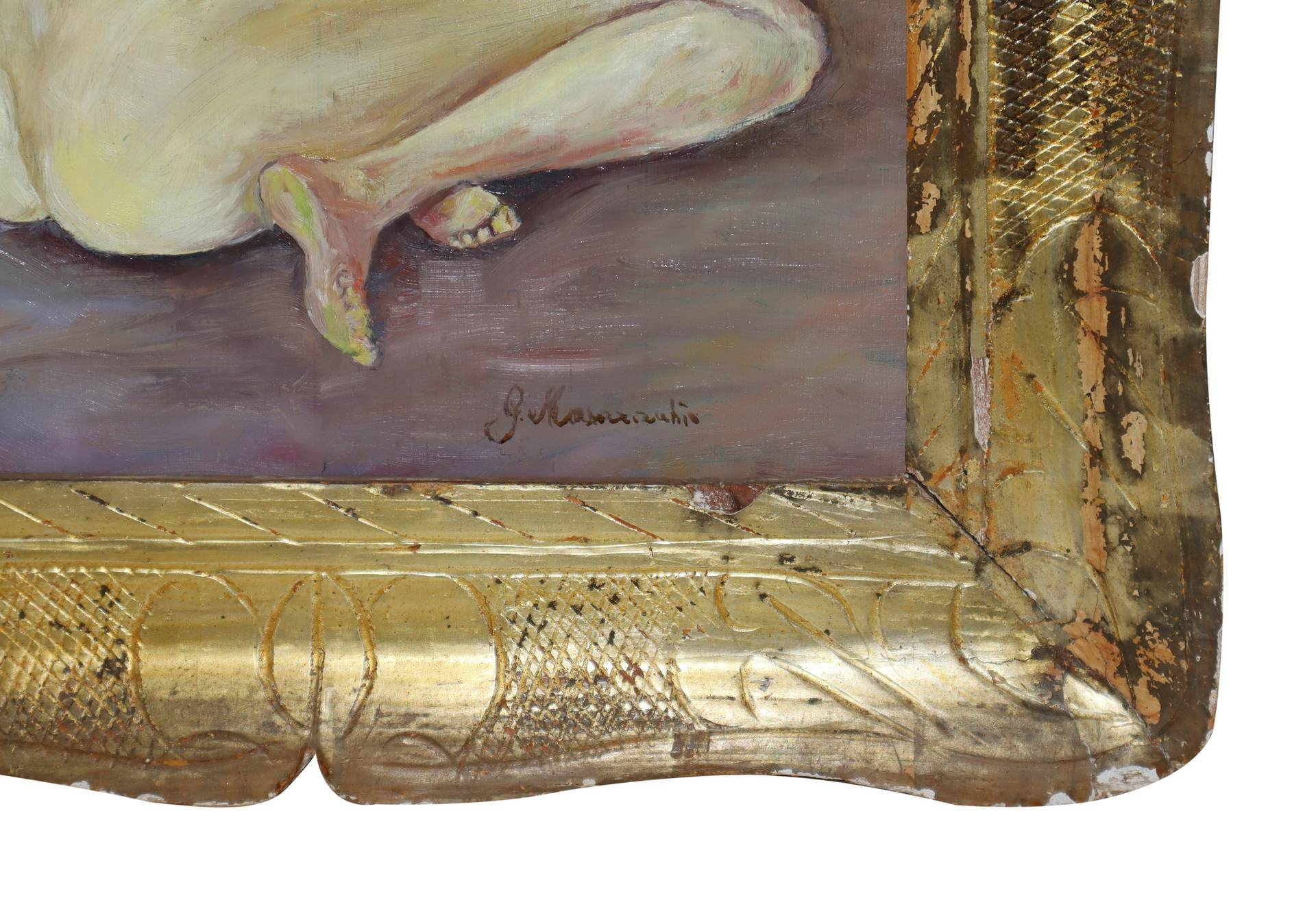 Nudo di donna, 20th secolo cm 44x33 in cornice cm 52x42 Olio su tavola Firmato in basso a destra. In cornice antica